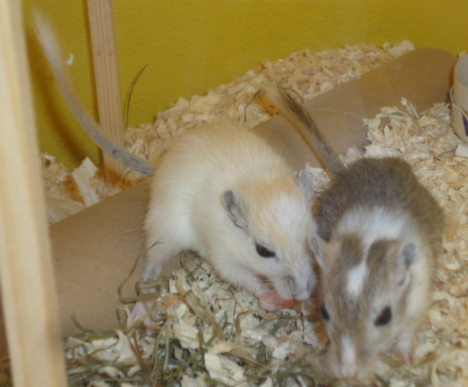 Po návratu z dovolené nás bohužel čekalo nepříjemné překvapení. Holky se nám popraly. Dominantní Vanilka napadla Orbitku a pokousala ji až do krve na levém oušku a kolem ocásku. Sama byla nateklá pod očima, to asi jak se snažila vyšťourat Orbitku s domečku a ta ji pištící vyškrábávala ven. S oběma jsem byla pro jistotu u veterináře. Rány se zahojí, Vanilce by měl otok splasknout. Takže oddělení na páry proběhlo neplánovaně o něco dříve. Máme tedy nyní akvárka dvě v jednom Alec s Vanilkou a ve druhém nový pár Vixík a Orbitka. Uvidíme, jak se jim bude dařit a kdy se dočkáme prvních miminek.